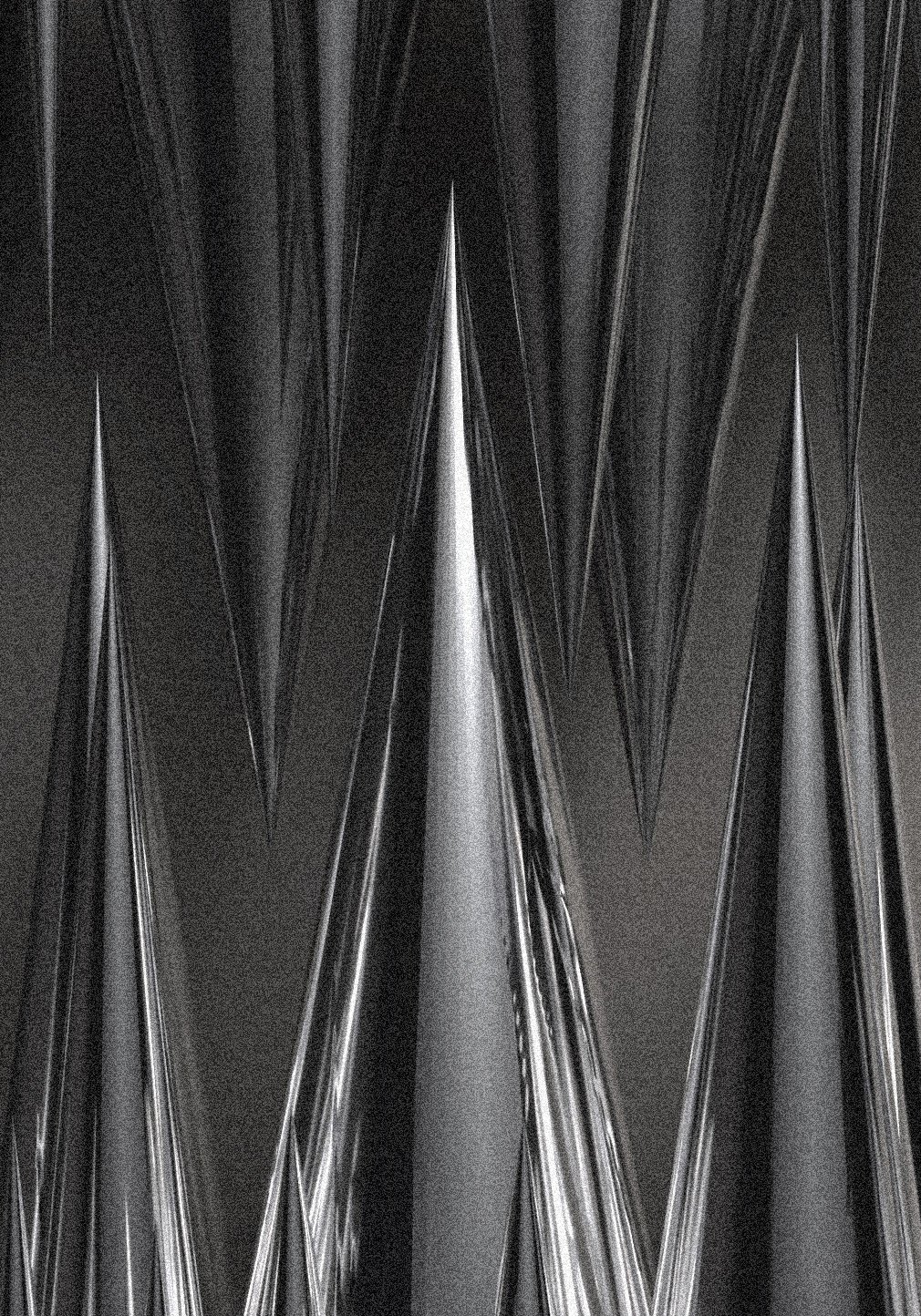 "Steel Forest" is a window display for the holiday season 2024, presented at Dover Street Market in London. The spatial design reimagines traditional fir trees through the use of industrial stainless steel. It transforms the storefront into a forest, abstracted through sleek steel cones. Illuminated by an intricate play of lighting that interacts with the reflective surfaces, the storefront becomes an ever-changing play of shadows and reflections.